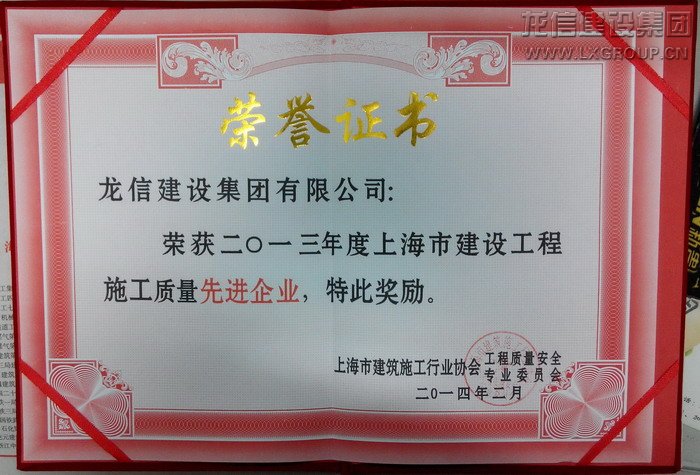 2013施工質(zhì)量先進企業(yè)榮譽證書