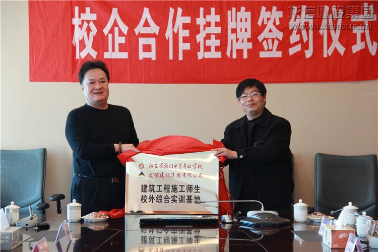 為促進校企深度合作,完善校企雙贏機制,實現(xiàn)校企協(xié)同發(fā)展, 2015年2月9日下午,在龍信大廈二樓會議室舉行了龍信集團與海門中專共建師生綜合校外實訓(xùn)基地的揭牌儀式。海門中專的陸衛(wèi)平副校長、郁建菊主任、張慧琴主管、楊海燕老師、黃其中老師,我集團總經(jīng)理唐愛東、監(jiān)事會主席卞勤華、集團常務(wù)副總工程師劉瑛、經(jīng)營部經(jīng)理賀廣海、施工技術(shù)部經(jīng)理張豪、人力資源部經(jīng)理黃麗英、人力資源部主管宋斌斌參加了揭牌儀式。