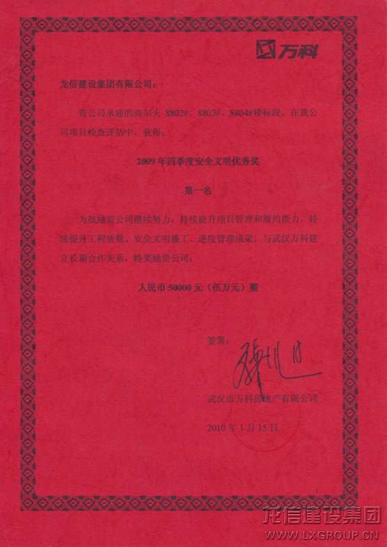 龍信集團被評為“2010年度江蘇省優(yōu)秀進京施工企業(yè)”