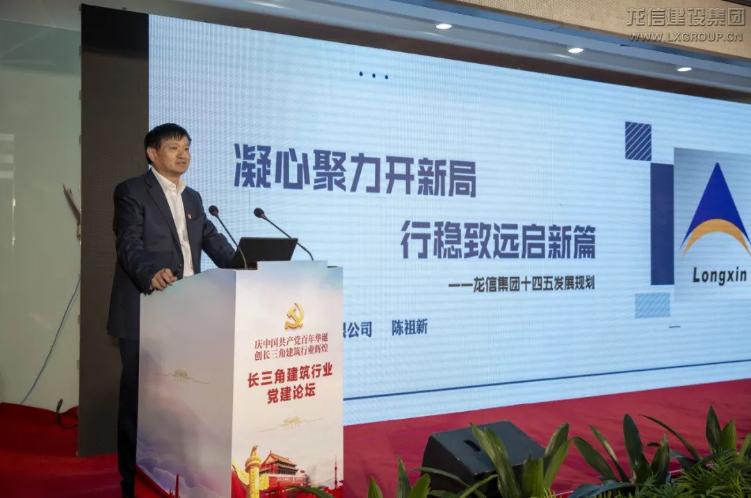 儀式上,龍信集團黨委書記、董事長陳祖新致辭,他表示,龍信集團始終堅持以黨建為統(tǒng)領(lǐng)推動企業(yè)高質(zhì)量發(fā)展。十九屆五中全會審議通過的“十四五規(guī)劃”和二〇三五年遠景目標為中國建筑業(yè)的發(fā)展指明了新的發(fā)展方向,龍信集團將堅定不移貫徹新發(fā)展理念,以科技創(chuàng)新為驅(qū)動,依托國家博士后科研工作站、龍信發(fā)展研究院等平臺,在創(chuàng)新中求突破,積極推動綠色建筑、智慧建筑發(fā)展,積極構(gòu)建新時期企業(yè)發(fā)展新格局。