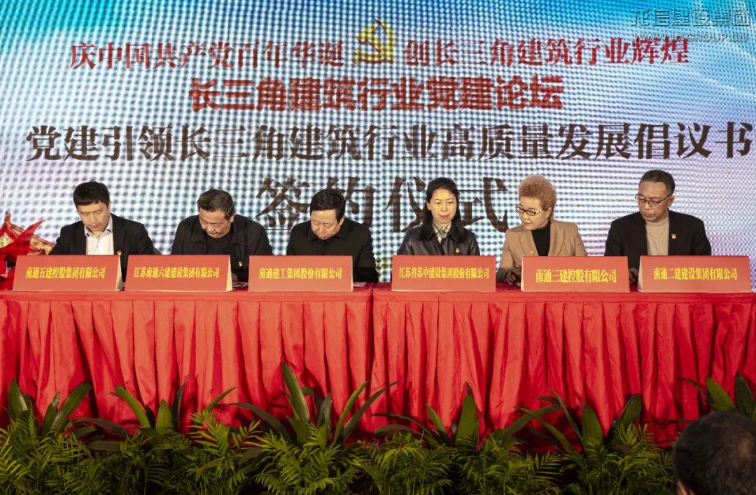 論壇上,長三角建筑行業(yè)黨建論壇揭牌,由安徽省建筑設(shè)計研究總院股份有限公司、沈陽建筑大學(xué)、中天建設(shè)集團有限公司、上海海怡建設(shè)(集團)有限公司、上海華東房產(chǎn)設(shè)計院有限公司、南通三建控股集團有限公司、江蘇省蘇中建設(shè)集團股份有限公司、南通建工集團股份有限公司、江蘇南通六建建設(shè)集團有限公司、南通五建控股集團有限公司、南通二建建設(shè)集團有限公司、龍信建設(shè)集團有限公司12家企業(yè)共同聯(lián)合發(fā)起《黨建引領(lǐng)長三角建筑行業(yè)高質(zhì)量發(fā)展倡議書》。《倡議書》指出,長三角一體化的步伐鏗鏘有力、建筑業(yè)轉(zhuǎn)型升級高質(zhì)量發(fā)展的藍圖已躍然紙上。未來,長三角區(qū)域里的建筑業(yè)企業(yè),將堅持黨建引領(lǐng)企業(yè)發(fā)展,以踏實肯干的“老黃牛”精神、敬業(yè)奉獻的“孺子牛”精神、敢闖敢干的“初生牛犢”精神,朝著高質(zhì)量發(fā)展的目標高歌猛進、再立新功,打好“十四五”之戰(zhàn)!